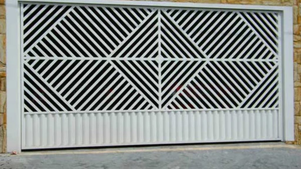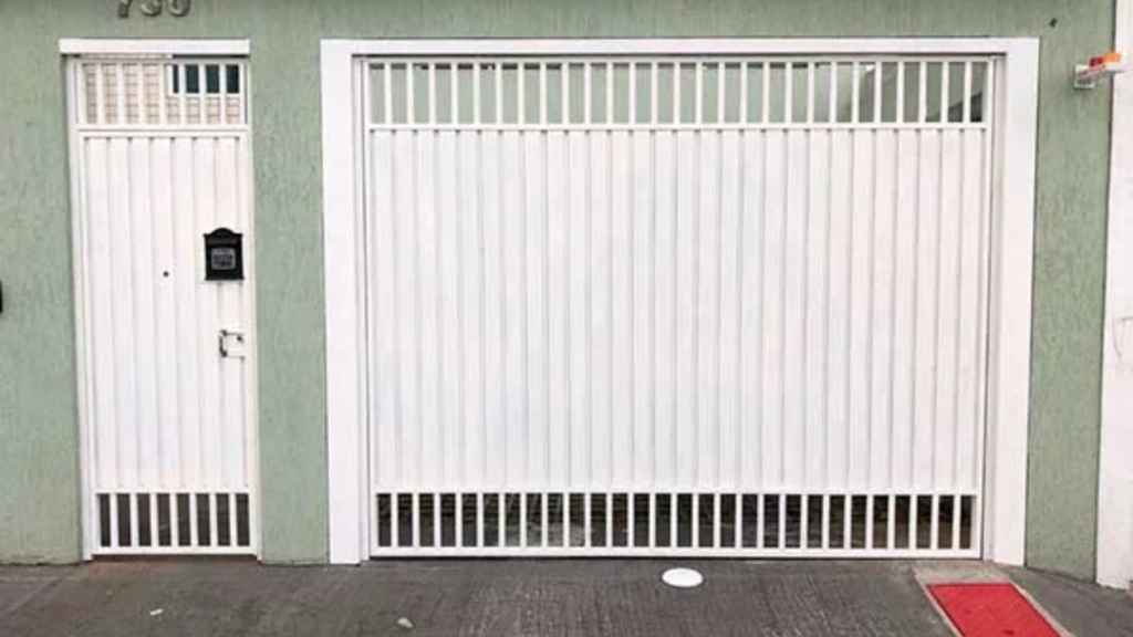 Esse portão é todo confeccionado em tudo e na parte inferior é coberta de chapa, sendo 100% galvanizado.
